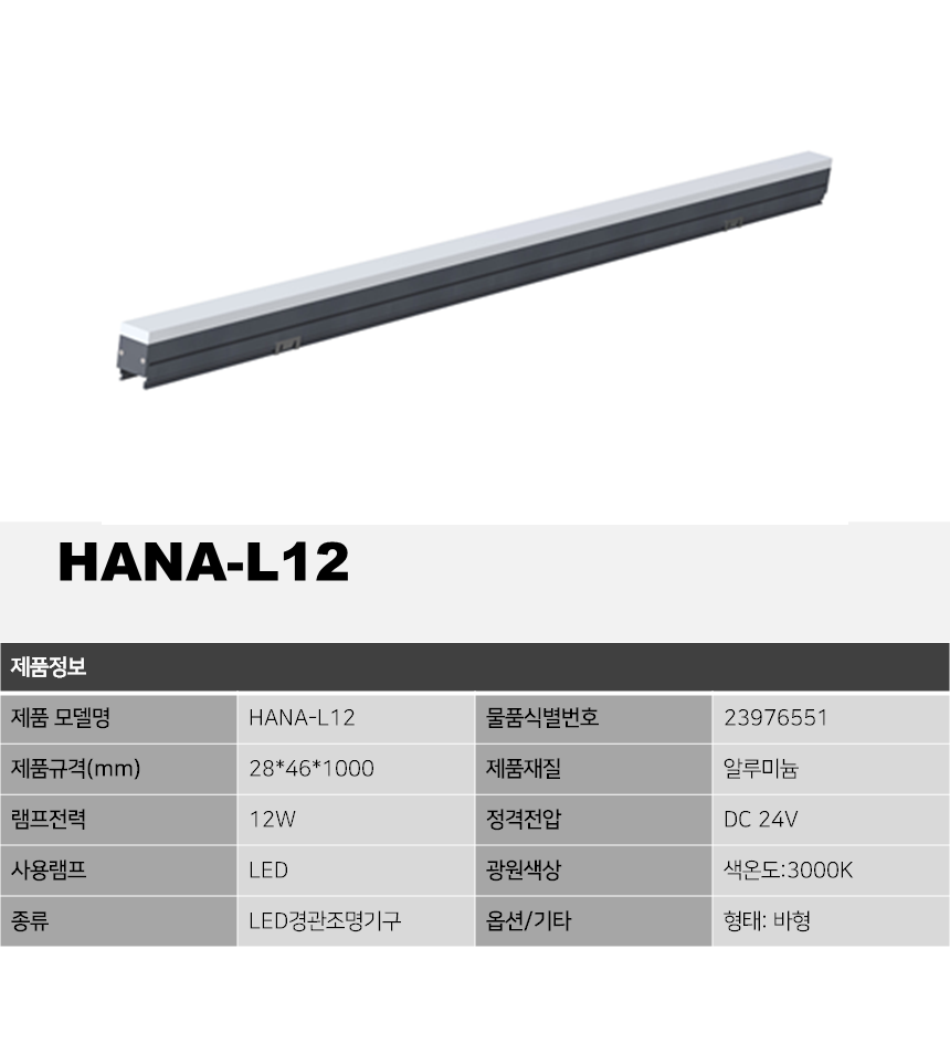 제품소개 LED조명 HANA-L12, 12W 라인바 작성자 admin 작성일 2021-10-20 11:15 조회 3248 인쇄 « HAN-IN-12, 12W HANA-IG75, 75W » 목록보기