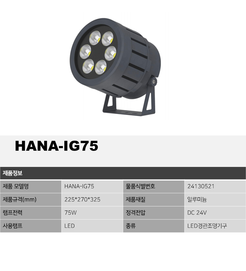 제품소개 LED조명 HANA-IG75, 75W 투사등 작성자 admin 작성일 2021-10-21 09:49 조회 2044 인쇄 « HANA-L12, 12W HANA-YM6438, 38W » 목록보기