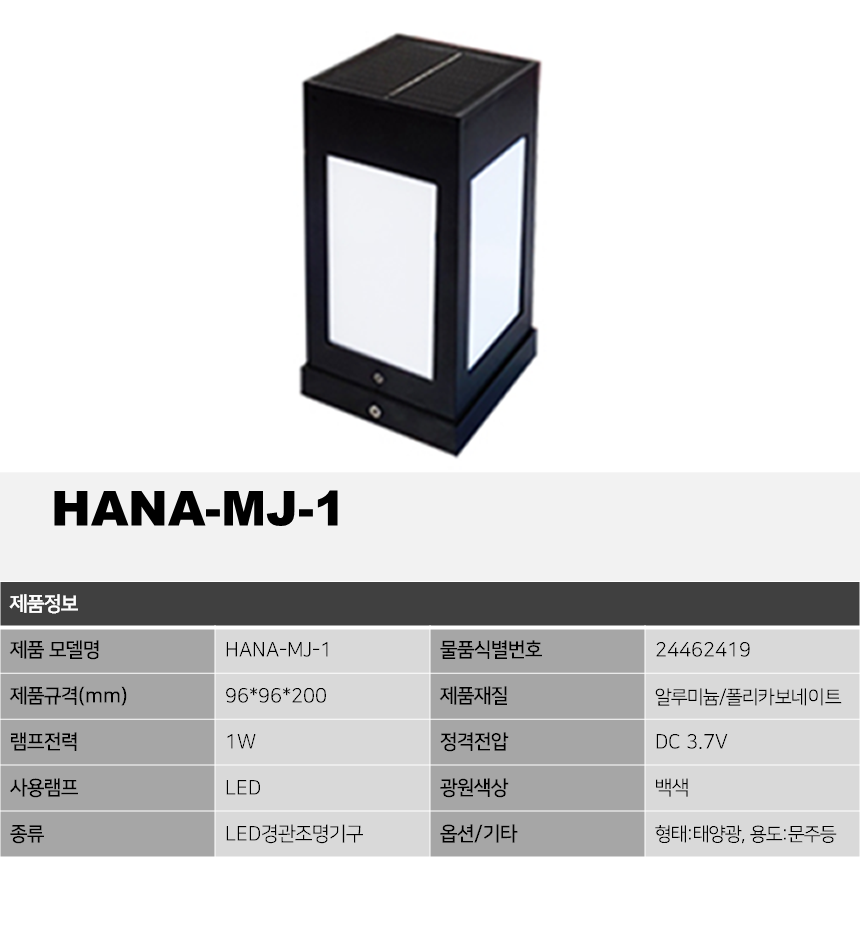 제품소개 LED조명 HANA-MJ-1, 1W 볼라드등 작성자 admin 작성일 2022-07-18 15:00 조회 2640 인쇄 « HANA-LYM6470, 70W HANA-LINE14.4, 14.4W » 목록보기