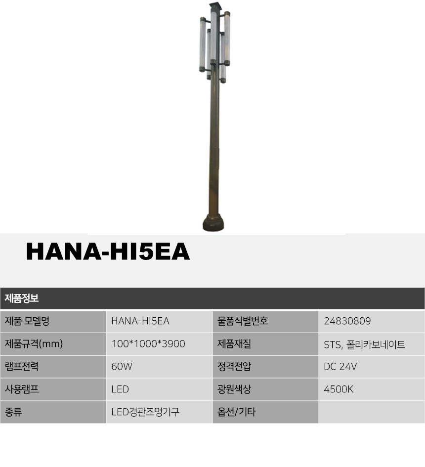 제품소개 LED조명 HANA-HI5EA 공원등 작성자 admin 작성일 2022-12-12 17:14 조회 2487 인쇄 « HANA-HI4EA HAN-S-L15, 15W » 목록보기