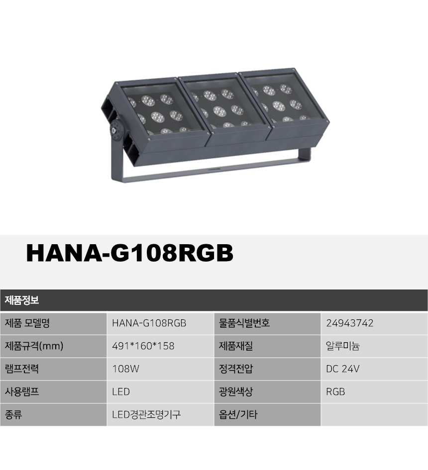제품소개 LED조명 HANA-G108RGB, LED108W 투사등 작성자 admin 작성일 2023-04-06 14:08 조회 2273 인쇄 « HANA-G108W, LED108W HANA-G54W, LED54W » 목록보기