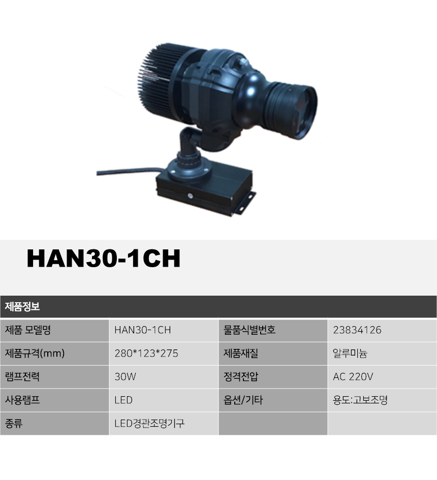 제품소개 LED조명 HAN30-1CH, 30W 고보조명 작성자 admin 작성일 2023-04-14 09:56 조회 2974 인쇄 « HAN-S-L18, 18W HANA-80W1CH, 80W » 목록보기
