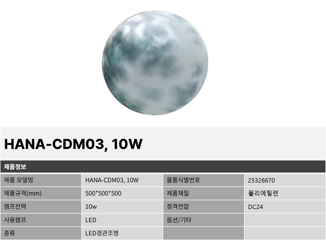 제품소개 LED조명 HANA-CDM03, 10W 기타조명 작성자 admin 작성일 2025-03-04 09:36 조회 615 HANA-CDM03, 10W 나라장터 바로가기 인쇄 « HANA-TE1 HANA-NBD1, 3W » 목록보기