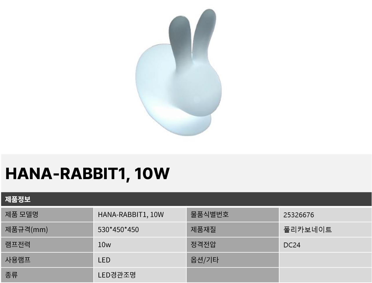 제품소개 LED조명 HANA-RABBIT1, 10W 기타조명 작성자 admin 작성일 2025-03-18 11:12 조회 531 HANA-RABBIT1, 10W 나라장터 바로가기 인쇄 « HANA-DBD2, 3W HANA-NBD2, 3W » 목록보기
